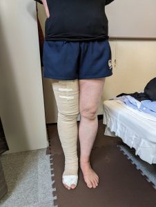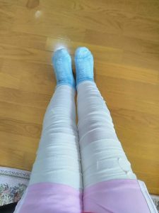 包帯に目覚めるきっかけになった、下肢全長にわたる包帯に出会えることはそうそうなくて、文房具店のおばちゃん以来10年ぶりくらいで、やっと見る機会が訪れました。地元の商店街の洋装店の奥さんが、右下肢全長にわたる圧迫包帯をして […]