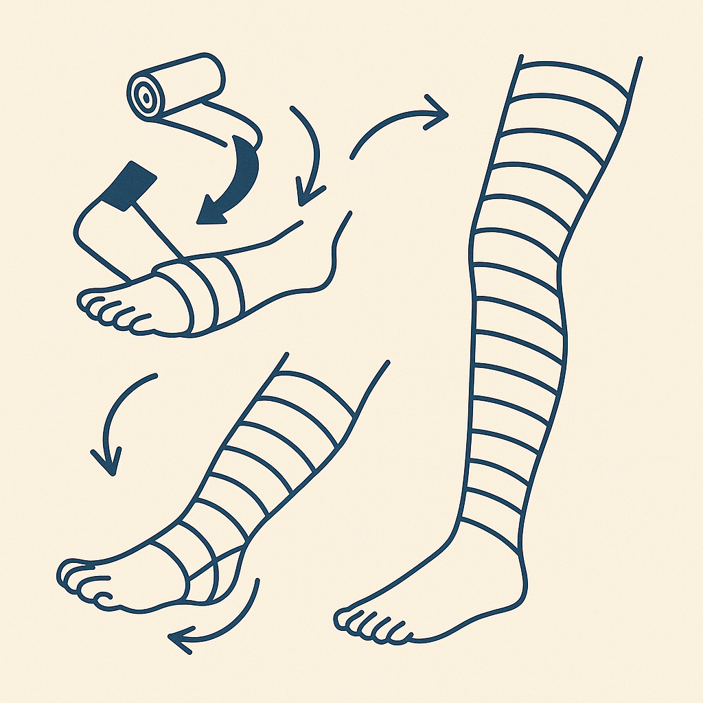 もし望めば、さらに包帯の種類や巻き方の具体名(例:ロシダルK、コンプリランなど)を入れて、医療・セルフケア寄りの記事にもできます。